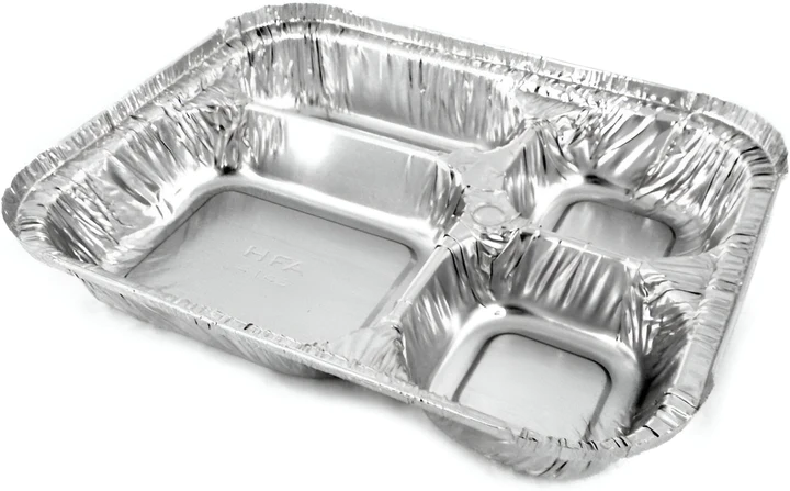 Shah Packaging Inc. Corporation Oblong 4 Compartment Foil Tray with Lid – a practical and efficient solution for culinary professionals, catering services, and home cooks. Each case includes 250 trays with lids, providing a reliable option for a variety of culinary applications. Elevate your food service and meal preparation with the Shah Packaging Inc. Corporation Oblong 4 Compartment Foil Tray with Lid. Order your case today and experience the convenience and versatility these trays bring to your kitchen.