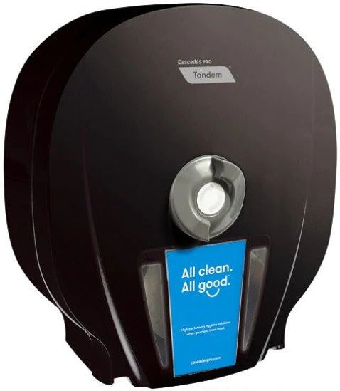 These dispensers are likely designed for ease of use and installation, providing a convenient solution for managing paper supplies in high-traffic areas or locations with substantial paper usage. Cascades Tissue Group often emphasizes sustainability, although specific details about this product’s eco-friendly aspects are not explicitly stated. Their commitment might include utilizing recycled materials or employing energy-efficient manufacturing processes where possible. In summary, the Cascades Tissue Group’s 4 Roll Black Tandem x4 Paper Dispensers offer a practical and efficient solution for managing paper supplies in various commercial and public settings, combining functionality with a sleek and contemporary design.